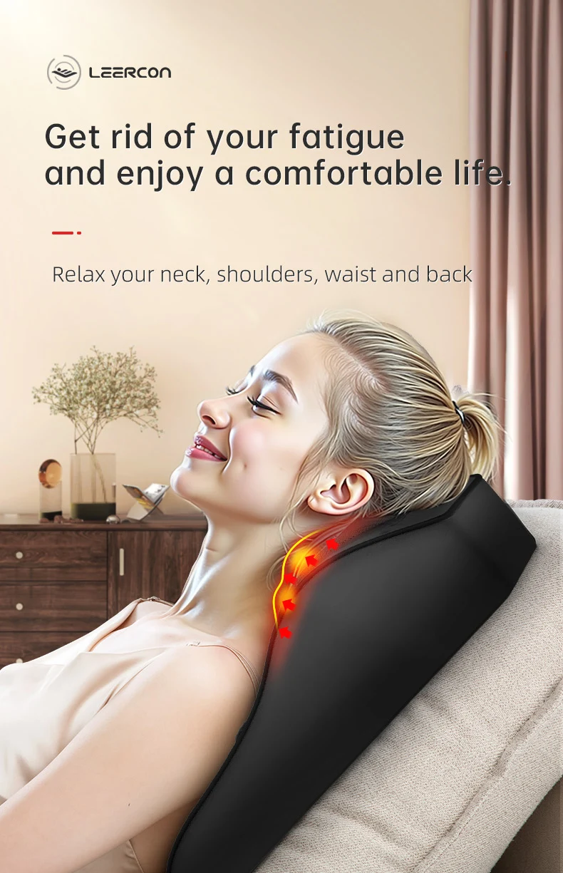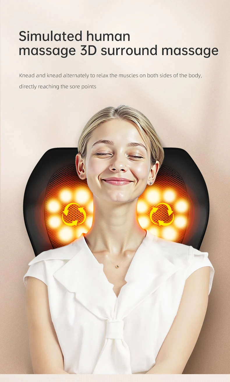 NeckFusion™ 3D Shiatsu Neck & Shoulder Massager Pillow – Heated Kneading Relief for Neck, Back & Stress